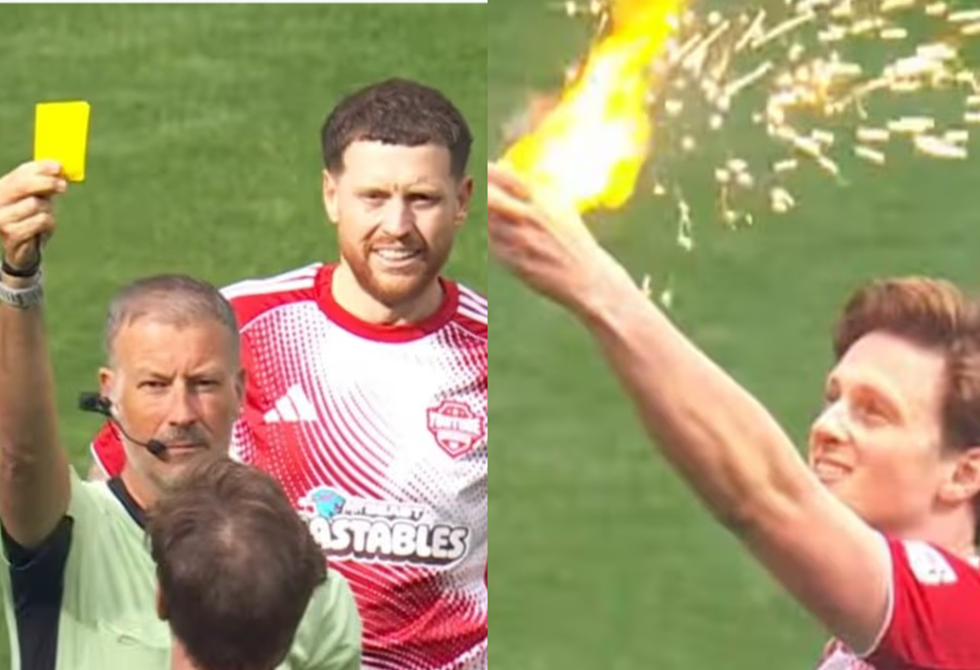 وبعد أقل من دقيقتين على انطلاقة الشوط الثاني ارتكب ماكس فوش خطأ متعمدا فتوجه إليه الحكم الدولي الإنجليزي السابق مارك كلاتنبورغ الذي يدير مباريات “سايدمن” الخيرية منذ عام 2022 ليشهر في وجهه البطاقة الصفراء.
