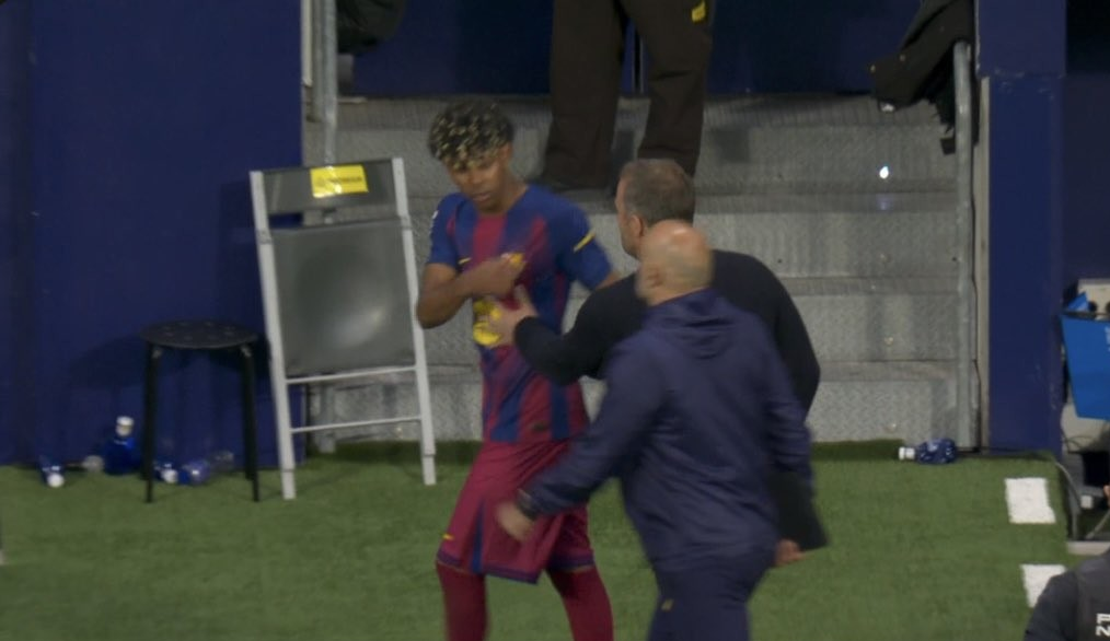 وبحسب ما ورد في صحيفة “آس” الإسبانية أيضا ظهر لامين جمال وهو يتوجه للنفق المؤدي لغرفة الملابس وهو منفعل ولم يصافح مدربه وكأنه يشير لشيء ما وهو يتحدث مع أحد أفراد الجهاز الفني.
