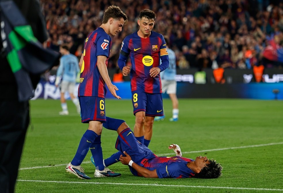 وانبرى لامين جمال لتنفيذ ركلة جزاء حصل عليها برشلونة في الدقيقة 40، وترجمها إلى هدف الفوز الوحيد لأصحاب الأرض، ولكن بعد تنفيذ الركلة مباشرة سقط على أرض ملعب “كامب نو” لشعوره بألم في الجزء الخلفي من فخذه الأيسر، وتم استبداله في الوقت بدل الضائع من الشوط الأول.