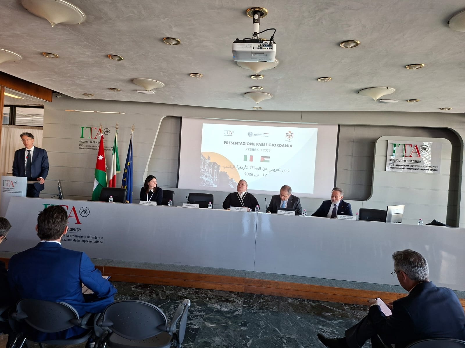 وشهدت العاصمة الإيطالية روما مؤخرًا حدثًا بارزًا يعكس عمق التعاون بين الأردن وإيطاليا، حيث نظمت جمعية فارنيزينا بالتعاون مع وكالة التجارة الإيطالية عرضًا تقديميًا خاصًا بالأردن، شاركت فيه وكيلة وزارة الخارجية والتعاون الدولي الإيطالية لورا تريبودي، فيما مثل الجانب الأردني وزيرة التخطيط والتعاون الدولي زينة طوقان ووزير الاستثمار طارق أبو غزالة، بحضور أكثر من خمسين شركة وجمعية أعمال إيطالية، وممثلين عن مؤسسات كبرى مثل CDP وSACE وSIMEST.