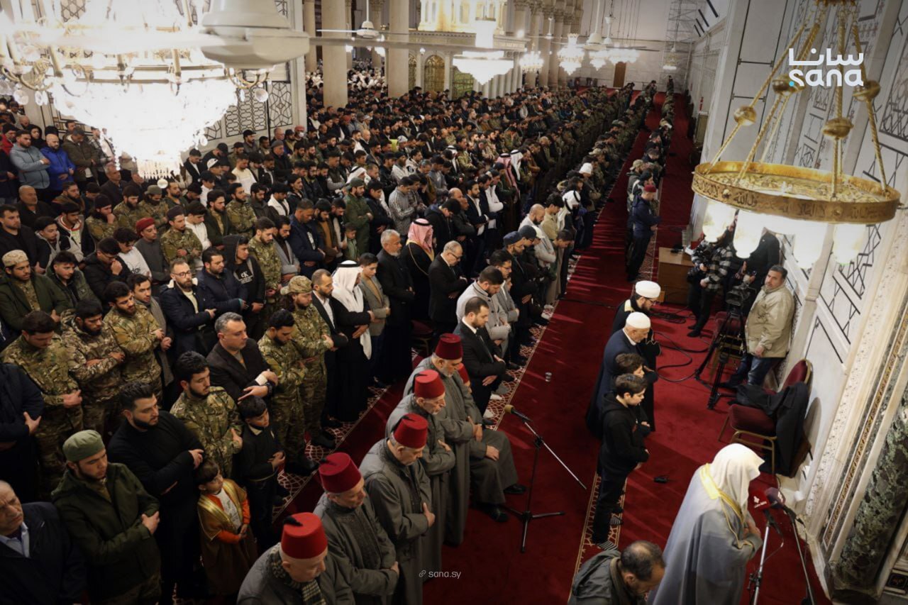 وفي سوريا، أدى السوريون صلاة عيد الفطر المبارك في مختلف المدن والمحافظات، حيث امتلأ الجامع الأموي الكبير وجامع الحسن في دمشق بالمصلين، فيما أدى الرئيس أحمد الشرع الصلاة في مصلى قصر الشعب في العاصمة. وفي الشمال والشرق السوري، شهد المسجد الكبير في معرة النعمان ومسجد الحسين في قلعة المضيق ومسجد سعيد الجابي في مدينة حماة، إلى جانب مسجد أبي هريرة في الرقة ومسجد الفتح في دير الزور والجامع الكبير في مدينة الباب بريف حلب، توافدا واسعا للمصلين لإقامة صلاة العيد.