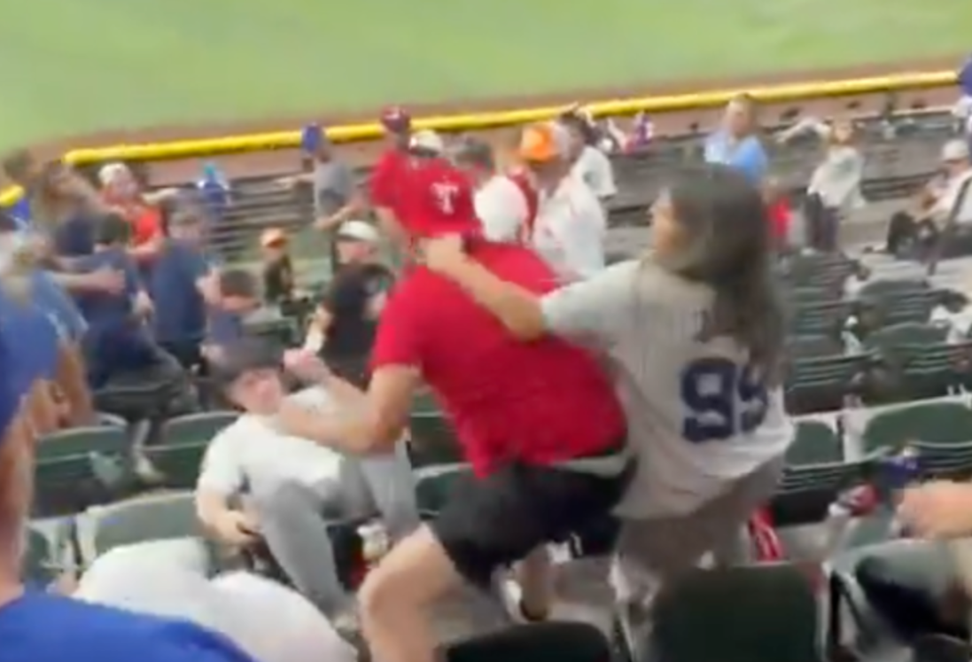 وتصاعد الموقف حين ضرب مشجع “يانكيز” زجاجة مشروب من يد مشجع لفريق “رينجرز”، مما فجر عراكا بالأيدي استخدم فيه مشجع آخر لـ “رينجرز” حامل أكواب بلاستيكية لضرب مشجع “يانكيز”.
